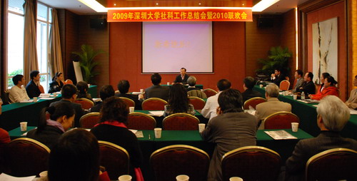 社科处姜安处长做2009年社科工作总结。总结指出,我校文科科研管理工作在以往取得成绩的基础上稳步增长,主要体现在以下四个方面:一、项目与成果管理稳步推进。2009年度国家社科基金项目立项6项,在广东高校中与华南师范大学并列第四名,立项率13.95%,明显高于全国平均立项率;并且在全国艺术科学规划项目和国家软科学项目有所突破,获得全国艺术科学规划项目2项,国家软科学项目1项;2009年项目总经费达2123万元。科研成果获省部级以上奖励11项,其中教育部1项成果获二等奖,司法部2项成果获奖。二、基地与机构建设特色鲜明,成果卓著。成立港澳基本法研究中心,设立知识产权研究所;大力发展文化产业研究,探讨文化产业发展,成功举办2009年第五届文博会乐竞平台分会场。三、积极开展学术交流与国际合作。先后邀请蒙代尔、李昌钰等知名专家到校讲学,举办了中国数量经济年会、广东省2009年学术年会青年学者专场等多个学术会议。四、完善社科管理,增强服务意识。放眼2010年,姜安提出新一年社科工作的“十大要务”,即从加强基地建设、争取重大攻关项目立项、规划两院、策划纪念深圳经济特区成立30周年系列活动等方面,积极推进社科科研工作创新。