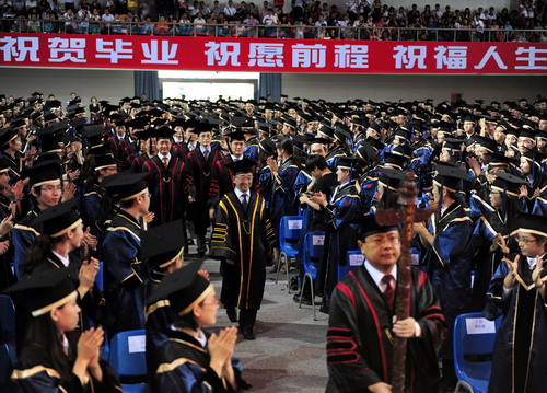 2011年我校共有5769名应届本科毕业生将要离开学校走上新的工作学习岗位。毕业生分布在建筑学、汉语言文学等54个专业。截止6月21日统计,计有4693名本科生按照教学计划要求完成专业学习,按期取得毕业证书;经审核,4693名毕业生均符合学校学士学位授予条例的有关规定,经校学位评定委员会审议批准获得学士学位,其中,有2名外国留学生完成了日语专业的教学计划要求,取得毕业证书和获得学士学位。本学期期末考试后还将有部分学生达到相关教学计划要求并取得毕业证书和获得学士学位。