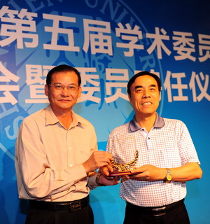 校党委书记江潭瑜为第四届学术委员会委员颁发纪念品。