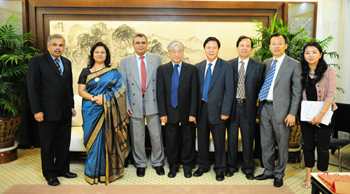 开幕式前,潘迪一行和校领导章必功、李凤亮在办公楼205进行会谈,就这次合作事宜进行了商讨,双方互赠了纪念品。