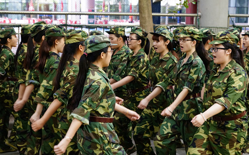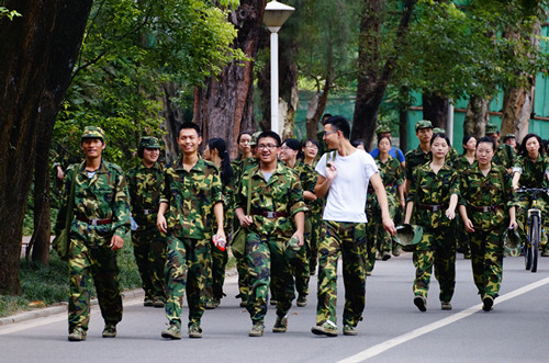 9月14日,2013级新生开始了为期10天的军事训练。身着迷彩服的新生们英姿焕发、装备整齐,6500多名新生兵分两团六个营,分驻我校南区运动场、北门田径场受训。