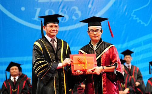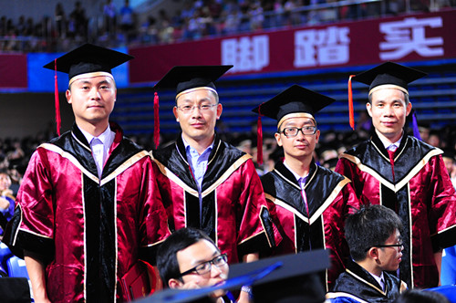 校党委书记江潭瑜、校长李清泉分别为全校优秀毕业生、研究生颁发学位证书并合影留念。