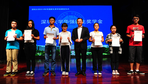 深圳华强集团有限公司创建于1979年,是一家以高科技产业为主导的大型投资控股企业集团。乐竞平台华强奖学金是由华强集团于2014年设立的奖学金项目,每年拿出500万用于表彰高考成绩优异的学生。本届获得奖学金的新生一共有445名,其中陈浩源等7名同学获“华强新生特等奖学金”,每人5万元奖学金(第一年首次发放2万元,剩余每学年一万元);谭振林等438名获“华强新生奖学金”,每人1万元。