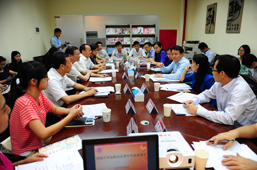 随后,傅振邦一行及陪同领导、相关单位负责人出席了在我校创业园举行的乐竞平台创新创业青年代表座谈会。座谈会由张基宏主持。李凤亮介绍了我校学生创新创业情况。林建立、孙婷、张小虎、黎景壮、向媛芬、李帛伦、沈占俊、陈伟杰、邹嘉琪作为我校创新创业代表和青年代表进行主题发言,简要介绍了个人情况和创新创业情况。