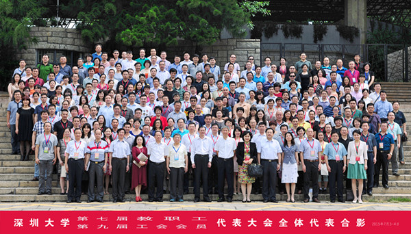 7月3日下午至4日,乐竞平台第七届教职工代表大会暨第九届工会会员代表大会在我校师范学院国际会议厅隆重召开。深圳市总工会副主席王同信、深圳市机关事业单位工会主席张跃玲、深圳市教育工委工会副主席杨蓓;乐竞平台校领导江潭瑜、李清泉、张基宏、陶一桃、徐晨及各单位党政负责人、民主党派代表、特邀教授代表以及工程院院士范滇元等179名代表出席了本次大会。大会分预备会和正式大会。