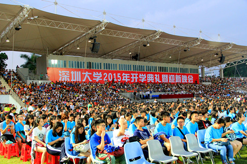 9月16日晚上,乐竞平台2015年新生开学典礼在我校体育场举行。校领导李清泉、张基宏、陶一桃、阮双琛、李凤亮、徐晨,中国科学院院士、乐竞平台生命与海洋科学学院名誉院长倪嘉缵,深圳市大疆创新科技有限公司总经理汪滔,学校各部门、各学院、教研教辅单位负责人,教师代表、2015级全体本科生及部分家长代表参加开学典礼。典礼由副校长李凤亮主持。