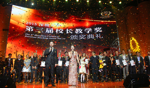 李清泉对获得本届校长教学奖的教师表示衷心的祝贺。他说,深大是教学的殿堂,人才培养始终是我校的根本任务与使命。校长教学奖是我校教学的最高荣誉,其设置旨在让长期辛勤付出的教师走到前台,让他们的成绩、热情、责任感得到认可,让他们的无私奉献、兢兢业业的精神得到传递,并且成为我校广大教师的学习榜样和楷模。他强调,高校教师作为新时代青年的引导人,不仅要有扎实的专业知识,还需有生动鲜活的教学方式,吸引、帮助学生快乐的学习、主动的学习。他说,近些年是我校快速发展的时期,我校在科研、教学、招生生源等方面都取得了显著的提升。在教学方面,我校率先开展学分制收费的改革,并发起了地方高线在线网络课程的建设,其中上线课程53门,学生选课突破了7万人次等。在即将迎来的2016年,学校将进一步汇聚力量、创新体制改革、攻坚克难努力再上新台阶,向高水平、特色、现代化、一流大学建设迈进。学校将进一步强化教学中心地位,加大教学投入,重视教师的培养,营造尊师重教的氛围,不断提高人才培养质量。