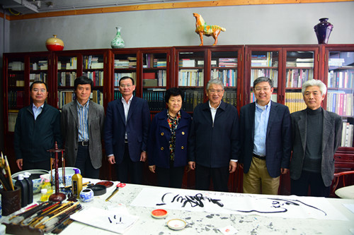 观赏完画作,李铁映与校领导品茶交流。他说,深大地处深圳这样一座开放的沿海城市,具有内地院校所没有的地域优势,要把握好市场和国际这两方面的资源。在市场方面,要不断完善学生培养方案,提升学生的水平,不仅仅是在国内占据一席之地,更要将目光投放到国外;在国际方面,要积极引进外语教师,设置双语教学,鼓励国内外教师的交流与合作,提升文化层面的交流和影响。他强调,改革在于培养,而培养的效果在于社会影响。只有走出去,才能获得更多的资源和资助,才能真正地提升学校的影响力。校党委书记江潭瑜表示十分认同李铁映的建议,认为要更加重视文化的交流与传播,不断拓展交换生、联合培养等项目,提升学校的综合实力。