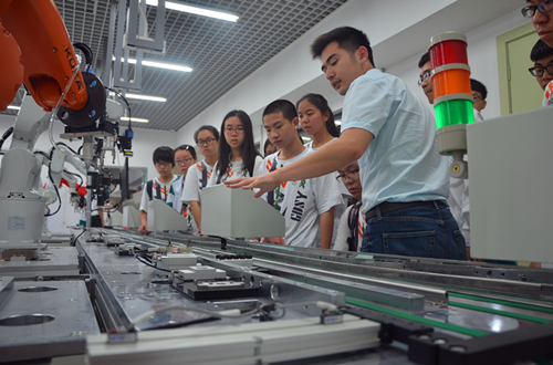 当天下午,“格致班”分成两组分别参观了高等研究院、计算机与软件学院和文博会深大荔园分会场、机电与控制工程学院。在高等研究院,学院的老师们为到来的同学们精心准备了一场前沿科技的饕餮盛宴。首先,韩志超院长致欢迎辞,并介绍了高等研究院的发展情况;潘科教授和Derek教授则介绍了学院的各个专业方向及各自科研项目的研究情况;韦阳博士则详细地描述了高等研究院极具特色的培养机制。在场的同学们都被学院这种交叉性、前沿性、拔尖性的人才培养特色所深深吸引。接着,同学们在老师的带领下参观了金融实验室、中央实验室、PCR技术演示和显微镜实验室,各种先进仪器令同学们大开眼界。在计算机与软件学院,同学们参观了云计算机智能服务中心、国家教学实验室和大数据实验室。最后,学院毛睿副院长还专门为同学们开了一场小讲座,介绍了学院的师资力量和科研水平,并和大家一起探讨我国计算机的发展现状。他风趣幽默而又极具见地的语言赢得了同学们的阵阵掌声。在文博会深大荔园分会场,同学们被琳琅满目的创意产品所吸引,并加入了互动:成群的男生在虚拟现实技术的游戏互动区域玩得不亦乐乎,不少女生则专注地盯着3D打印机的运作,不时地询问摊位负责人相关原理。而在机电与控制工程学院,同学们还参与了PPCNC(个人便携式数控机床)的使用体验,观看了VR(虚拟现实)展示城市轨道交通的运行以及RoboPilots俱乐部的机器人比赛模拟赛场。