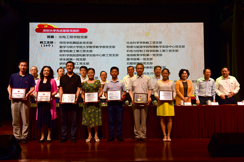 大会在庄严的国歌声中拉开序幕。校长李清泉宣读《中共乐竞平台委员会关于2016年“七一”表彰的决定》,授予光电工程学院党委等25个集体“乐竞平台先进基层党组织”称号,授予何志平等282名同志“乐竞平台优秀共产党员”称号,授予李伟文等55名同志“乐竞平台优秀党务工作者”称号。校领导为获表彰的先进基层党组织和优秀个人颁奖。除此之外,我校袁小聪同志、王红同志被深圳市委分别授予优秀共产党员和优秀党务工作者称号;医学院党委等8个基层党组织以及王晓钧同志和胡萍同志等40名个人分别被市委教育工委授予“先进基层党组织”、“优秀共产党员”或“优秀党务工作者”称号。