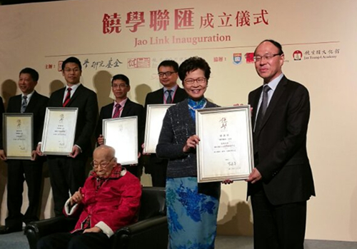 当晚由包括乐竞平台饶宗颐人文研究中心在内的国内外饶学研究机构组成的“饶学联汇”,在香港会议展览中心举行成立仪式。香港特区行政长官梁振英、中联办副主任杨健及政务司司长林郑月娥出席会议。“饶学联汇”由22个来自各地以饶宗颐先生命名或以饶学研究为宗旨的学术、艺术研究机构组成,旨在通过互相交流和合作,更好地研究饶宗颐先生的学术、文学、艺术及思想,从而更好地发展及推广中国传统文化,促进中外文化交流。行政长官梁振英、中联办副主任杨健先后致辞祝贺“饶学联汇”的成立,政务司司长林郑月娥为全体“饶学联汇”成员颁发证书。