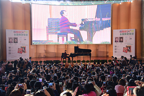 当天上午,著名钢琴家、沈阳音乐学院教授、郎朗的启蒙恩师朱雅芬教授,为报名参与本次大师课的多个音乐教育机构教师和个人以及我校音乐专业的师生带来了专业的音乐示范课。朱教授围绕“如何教好学生”这个主题进行了讲解和示范,解释了如何在音乐教学中让学生一开始就把技术和音乐结合好。朱教授注重启发式教学,重视技巧同时又强调应该重视实践。课上她结合新版《跟郎朗学钢琴》教材,讲解了音乐启蒙教育中应该注意的要素。