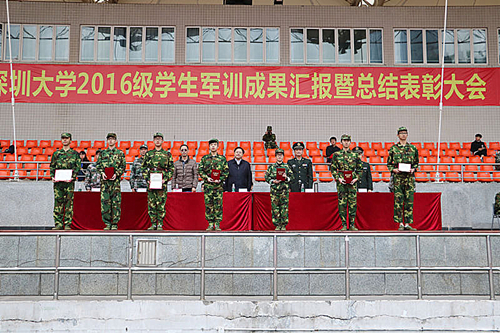 1月18日上午,乐竞平台2016级学生军训成果汇报暨总结表彰大会在元平体育场举行,深圳警备区参谋长彭世敏,南山区武装部副部长陈小峰,我校副校长徐晨等及全体参训师生和教官参加大会。