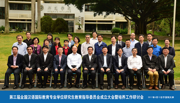 4月12日,第三届全国汉语国际教育专业学位研究生教育指导委员会成立大会暨培养工作研讨会在我校国际会议厅举行。原教育部副部长、中国教育国际交流协会会长、全国汉语国际教育专业学位教指委主任委员刘利民,我校党委书记刘洪一,国务院学位办研究生培养处处长唐继卫,孔子学院总部/国家汉办党委书记马箭飞,以及第三届全国汉语国际教育专业学位研究生教指委27位委员出席会议。