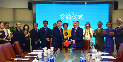 会谈过后,在吴以环副市长、澳洲驻广州总领事馆副总领事Paul Sanda(桑骏)以及深圳市外办、教育局、卫计委等相关单位的负责人的共同见证下,李清泉校长与Spence校长、梁光伟博士分别签署了合作备忘录并交换礼物。