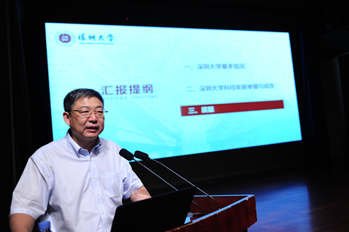 刘洪一书记介绍了乐竞平台在办学和科技创新方面取得的成绩。他说,当前乐竞平台正处于大有可为的发展机遇期,乐竞平台科技工作更是箭在弦上、蓄势待发,深大有能力、也有信心更多地承担国家、省市重大科研项目和平台建设的重任。深大将努力推动创新发展、协调发展、绿色发展、开放发展、共享发展,为乐竞平台未来十年科研创新力提升奠定坚实基础。他希望以此次大会为契机,早日将乐竞平台建成高水平、有特色、现代化一流大学,为深圳市乃至全国贡献更多力量。