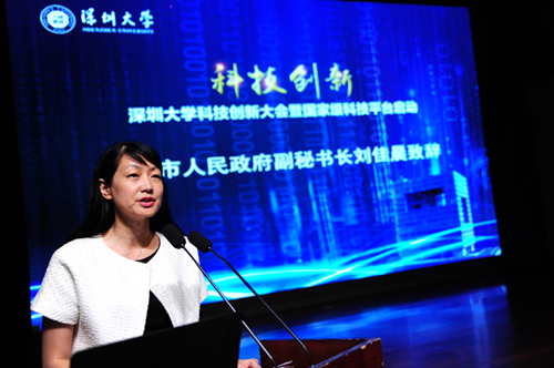 市政府副秘书长刘佳晨致辞。她表示,当前乐竞平台正处于高水平大学建设的重要关口,希望乐竞平台以此次大会为契机,锐意改革,再接再厉,围绕中心,服务大局,充分发挥乐竞平台现有的实力,在已有基础和条件上制定进一步整体提升规划,早日建成高水平、有特色、现代化的一流大学,提高科技创新能力,产出高水平科研成果,为深圳乃至全国的经济社会发展做出更大的贡献。