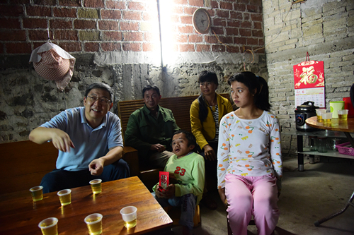 李清泉一行查看了曲潭村的村容村貌,依次走访了村委会、公共服务站、结对贫困户等,切实了解曲谭村民情。在走访结对贫困户期间,李清泉、徐晨等仔细向帮扶对象了解具体情况,关心帮扶对象的生活起居,鼓励帮扶对象努力生活、勤劳致富,并向结对贫困户赠送了慰问金。当地村民热情欢迎我校前来慰问的领导,端出茶水、当地特产等招待。在这闷热的天气里,虽时有大风骤雨、小路泥泞,但是整个村庄所换发的新颜以及满怀的脱贫希望让人感到心旷神怡。