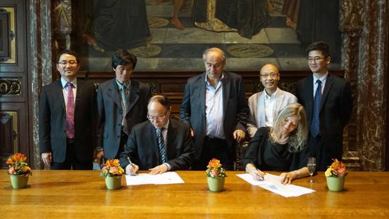 6月26日上午,刘洪一一行应邀抵达荷兰莱顿大学,该校区域研究院院长彭轲教授(Frank Pieke)热情接待来访。刘洪一指出,荷兰与中国有着悠久的文化关联,也是一带一路的重要节点国家。此前担任荷兰乌特勒之大学文学院院长以及国际比较文学协会会长的杜威•佛克马(Douwe Fokkema)是享誉世界的著名学者,也是乐竞平台的老朋友,多次到访深大,并为深大推荐过优秀人才。刘洪一深入了解莱顿大学区域研究院特别是东方文化的研究情况,并就引进该校优秀人才进行了交流。