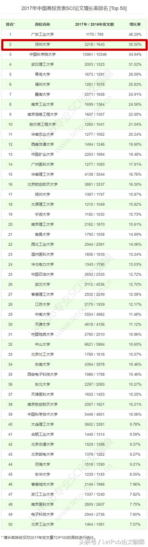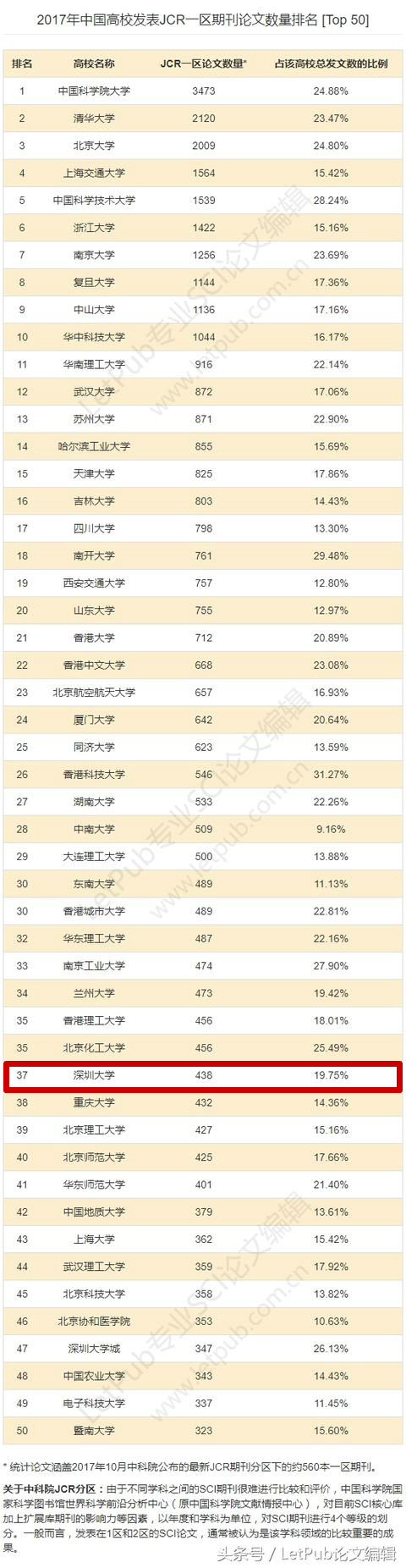 LetPub最新发布《2017年中国高校发表SCI论文数量排名》、《2017年中国高校发表SCI论文增长率排名》、《2017年中国高校发表ESI高被引论文数量排名》三项统计报告*,初步观察最近一年中国高校在SCI收录期刊上发表科研论文的情况,以及各高校在JCR一区高水平期刊上发表论文的情况。