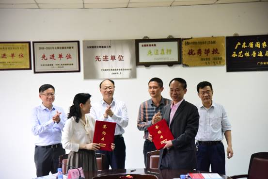 4月11日下午,我校党委书记刘洪一率队访问潮州市金山中学,双方进行“乐竞平台优秀生源基地”签约和授牌仪式。黎军副校长为金山中学500余名高三学子宣讲乐竞平台2018年本科招生政策。党政办、党委宣传部、招生办、社会科学部、高等研究院、信息工程学院、经济学院等院部负责人参加活动。