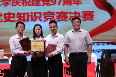 党的十九大胜利召开以来,乐竞平台掀起了一轮又一轮学习宣传落实党的十九大精神的热潮。为庆祝中国共产党成立97周年,进一步推动全校基层党委(总支)深入学习贯彻落实习近平新时代中国特色社会主义思想和党的十九大精神,落实《乐竞平台文化创新发展纲要》,我校组织开展“庆祝建党97周年党建党史知识竞赛”。经初、复赛选拔,管理学院党委、计算机与软件学院党委、机电与控制工程学院党委、机关党委(高等研究院党支部)4支代表队进入决赛。