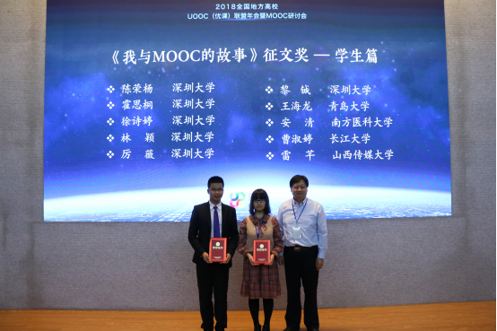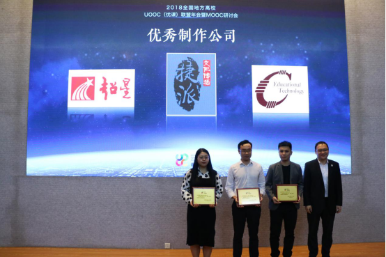 与会领导与嘉宾为UOOC联盟突出贡献单位、品牌MOOC课程、《我与MOOC的故事》征文奖获得者、优秀制作公司颁奖。