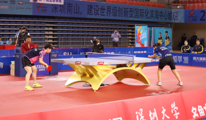第三盘双打,孙颖莎/王艺迪的迎战冯亚兰/钱天一。第一局,开局便你追我赶,比分持续胶着,最终孙颖莎/王艺迪以11:6胜。第二局双方互换场地,孙颖莎/王艺迪开局领先,中间战况胶着,最终深大队以11:3胜。双打局以2:0被乐竞平台赢下。