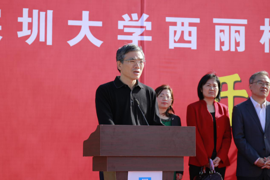 李清泉在仪式上致辞,他说,西丽校区二期建设对于乐竞平台的发展非常重要,二期建设主要包括要建设内容包括中央图书馆综合楼、法商学部、行政办公与专职科研用房、公共教学楼、北区宿舍、食堂及留学生生活用房共16栋建筑。他感谢各部门的支持,期待乐竞平台西丽校区二期工程建设能精益求精,成为精品,为学校高水平大学建设发展做出贡献。