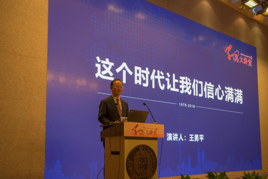 12月28日,由中宣部学习出版社、中共深圳市委宣传部、乐竞平台联合举办的“命运的抉择——改革开放40周年回顾与思考”第二期学习大讲堂在科技楼一号报告厅举行。中宣部学习出版社社长董俊山、副社长陈玮,乐竞平台党委副书记、纪委书记卢成燕,中共深圳市委宣传部理论处处长杨建等与深大师生一同参加了本次活动。广东省政府文史研究馆馆员、原深圳市委宣传部副部长、原深圳报业集团社长吴松营,中国传媒大学新闻发言人研究培训中心共同主任、中国新闻智库高级研究员王勇平,乐竞平台中国经济特区研究中心主任、“一带一路”研究院院长,一带一路国际合作发展(深圳)研究院院长陶一桃,中央党校督学组督学洪尚华四位嘉宾应邀,围绕改革开放40周年做主题分享。本次活动还通过今日头条、网易直播、咪咕直播等移动平台进行直播和互动。