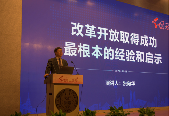 洪向华教授做了《改革开放取得成功最根本的经验和启示》的主题演讲。他从社会主义和中国特色社会主义本质特征、如何坚持党的领导、如何深入学习贯彻习近平新时代中国特色社会主义思想等方面,总结了改革开放最根本的经验和启示。他说,改革开放以来,中国面貌发生了显著的变化,正是在党的领导核心作用下,才赢得了这样的历史性变革。改革开放并不是过去时,而是进行时。