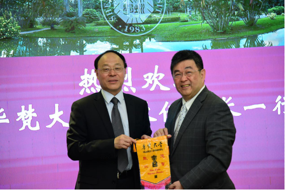 3月27日上午,台湾华梵大学李天任校长一行来我校访问。我校党委书记刘洪一,社会科学部、港澳台事务办公室、艺术学部、饶宗颐研究院等部门负责人与来宾座谈交流。