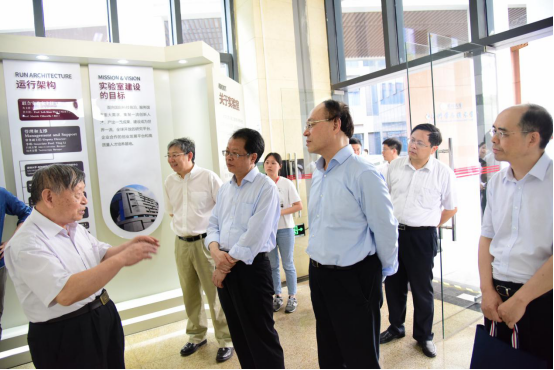 张子兴一行首先参观调研了深大党群服务中心,并见证了正在进行的大学生廉洁教育活动。张子兴对深大此前举办的“廉洁动漫”活动予以肯定,并强调廉政教育要在把握好主题的同时增强创新意识,希望深大继续进行探索。随后,张子兴一行参观调研了二维材料光电科技国际合作联合实验室和大数据系统计算机技术国家工程实验室。在二维材料光电科技国际合作联合实验室,中国工程院院士、我校光电工程学院教授范滇元陪同讲解,介绍了二维材料组成和运用等情况。在大数据系统计算机技术国家工程实验室,我校计算机与软件学院副院长毛睿教授分别从社会评价、权威学科排名、论文、科研项目、招生分数等方面介绍了我校计算机与软件学院的情况,并展示了深大自主研制的芯片以及高精准度的血糖测量仪。