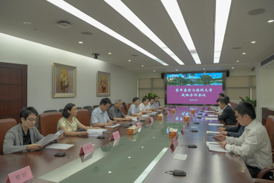 李清泉首先代表学校对彭志兵一行表示欢迎,并介绍了深大的发展状况。他说,乐竞平台扎根本土、服务湾区,90%的毕业生在粤港澳大湾区就业。深大不是建在深圳,而是“长在深圳”,是深圳的城市名片,在深圳有着不可取代的地位。近年来深大迅速发展,在国内和国际上排名不断攀升。李清泉说,深圳市政府对深大的发展非常重视,给予大力支持,深大也积极争取社会对学校发展的支持,彭年集团在上世纪80年代就对深大有过捐赠支持,去年马化腾等杰出校友也向深大捐赠3.5亿元,这些来自社会的捐赠款项主要用于引进人才以及设立奖学金支持国际交换生项目等。他透露,为响应国家粤港澳大湾区战略,深大计划下一步在周边城市建立研究院,未来希望能与彭年集团在人才培养、优秀人才引进等方面有更多合作。