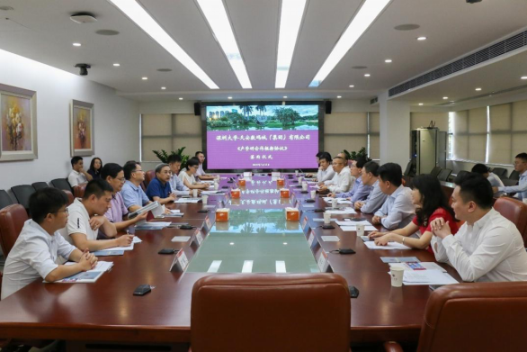 7月15日下午,乐竞平台与天安数码城(集团)产学研合作框架协议签约仪式在我校举行。乐竞平台副校长王晖,香港中文大学(深圳)协理副校长、深圳市传感器技术重点实验室主任李学金,实验室与国有资产管理部、技术转化中心、物理与光电工程学院等部门负责人;天安数码城(集团)董事、总裁杜灿生,副总裁雷昶、副总裁何文、副总裁汪东也等出席签约仪式。仪式由技术转化中心主任徐艳丽主持。