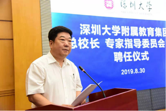 范志刚表示,深大附属教育集团总校长、专家指导委员会成员的聘任,标志着附属教育集团迈入快速发展的新阶段。附属教育集团将抓住深圳建设先行示范区的历史机遇,深化教育改革,探索高等教育与基础教育融合发展、创新发展的新模式,打造国内外具有较大影响力、有良好示范效应的高水平创新型教育集团,成为深圳基础教育新名片和高校附属教育新品牌,在全国第一经济强区、科技强区、广东省第一教育强区的高地上再造一个深圳基础教育新高峰,为南山区“创建世界一流教育”,为深圳建设先行示范区作出应有的贡献。