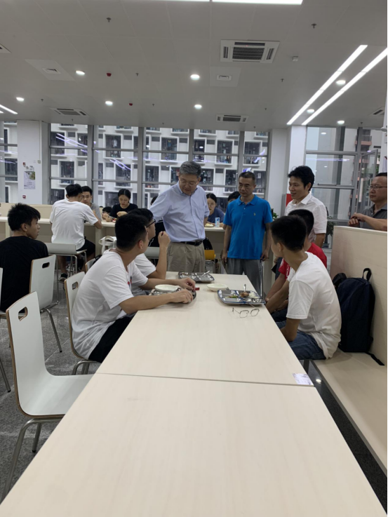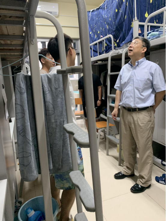 校领导对新生入学的饮食和住宿问题高度重视。9月7日上午,王晖、李永华与后勤部、基建部、学生部主要负责人一同走访了1号楼及荔天餐厅。两位副校长详细了解了当天学生报到的各项数据,并陆续走访了1号楼新生领钥匙现场、新生宿舍及活动室等,与学生及家长亲切交谈,询问他们对新宿舍环境的感受,并听取了他们的意见。接着,一行人来到荔天餐厅二楼就餐区域召开短会,王晖对保障新生入学工作给予了充分的肯定,1号楼及荔天餐厅的启用,筹备时间短,任务琐碎而繁重,相关部门间通力合作,最终保质保量的完成了工作。李永华嘱咐各部门继续以高标准要求自己,共同把学校事务办实、办好。