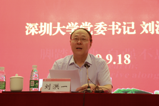 刘洪一在动员讲话中指出,学校开展“不忘初心、牢记使命”主题教育集中学习研讨,目的是要使全校党员领导干部进一步坚定信仰、信念、信心,树牢“四个意识”、坚定“四个自信”、坚决做到“两个维护”,牢记教育的初心和使命,团结带领全校师生奋力走好新时代的长征路,奋力推进新时代高水平特区大学建设。他代表学校党委对集中学习研讨提出五点意见:一要深入学习习近平新时代中国特色社会主义思想,自觉做习近平新时代中国特色社会主义思想的坚定信仰者、忠诚实践者。要带着真心、带着责任、带着感情,全面系统深入学习,始终在思想、政治、行动上同以习近平同志为核心的党中央保持高度一致。二要深入学习红色精神和特区改革创新精神,奋力推动新时代高水平特区大学建设。要学习弘扬红色精神和特区改革创新精神,从历史中汲取前行的力量,结合践行“脚踏实地、自强不息”的深大精神,推动我校在高等教育改革创新中继续挺立前进,为社会主义先行示范区建设贡献中国高等教育的改革方案。三要深入学习党的群众路线、群众观点,集中力量解决师生反映强烈的问题。要保持与师生的紧密联系,广泛听取师生意见,认真解决师生反映强烈的问题,凝聚全校师生的智慧和力量努力建设好高水平特区大学。四要深入学习斗争精神和斗争本领,以坚定信心和战略定力应对好各种风险挑战。要努力培养斗争精神,增强斗争本领,牢牢把握意识形态斗争的主动权,同一切影响阻碍学校高水平大学建设发展的风险挑战作斗争。五要深入学习党的政治纪律和政治规矩,进一步做到知敬畏、存戒惧、守底线。要以永远在路上的坚韧和执着,认真学习党章、遵守党规、严守党纪,不断增强党员领导干部党的意识、党员意识、纪律意识。