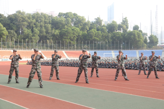 校武装部苏鹏飞老师向参训新生讲解征兵政策后,参训教官代表进行队列展示和拳术展示。1月17日,我校将举行新生军训会操表演,检验各团的训练成果。