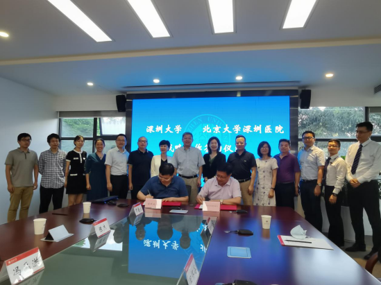 签约前,双方代表还就其他校企合作内容展开交流。北京大学深圳医院副院长曾晖、黎杰运,相关部室负责人;我校计算机与软件学院、科学技术部、资产经营公司、技术转化中心等部门负责人参加签约仪式。