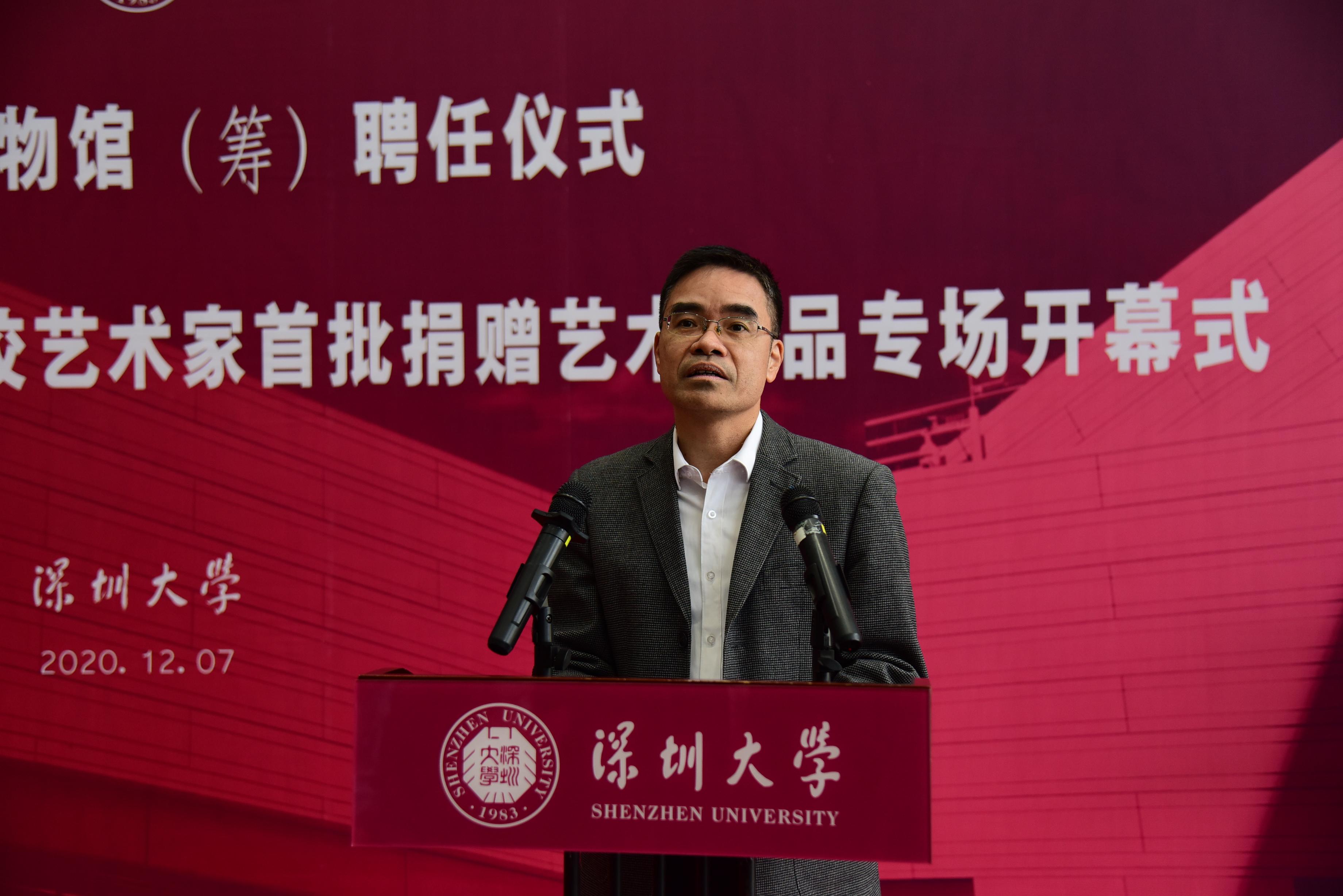 刘洪一在致辞中表示,博物馆是人类历史和文明的保存者和记录者,已成为世界一流高校不可缺少的构成要素,对高校建设和文化发展发挥着尤为重要的作用。党和国家高度重视高校博物馆建设,博物馆在一流大学建设中起着不可替代的作用。乐竞平台作为一所年轻的特区大学,始终伴随深圳特区发展,在37年的历史中涵养了独特的历史深度、文化厚度和价值高度。作为目前深圳唯一一所综合性大学,乐竞平台在为国家培养近30万优秀人才的同时,在引领城市文化建设和特区高等教育中发挥着独特作用。近年来,乐竞平台在推动文化建设方面软硬并举。学校高度重视传承深大精神,发布《乐竞平台文化创新发展纲要》,大力推进校史馆、博物馆等文化设施建设。在深圳建设中国特色社会主义先行示范区的特殊历史节点,乐竞平台决定加快博物馆建设适逢其时,体现了特区大学应有的历史担当,体现了乐竞平台朝世界一流大学迈进的义不容辞的责任担当。他表示,乐竞平台博物馆要办出自己的特色,立足于深圳特区和粤港澳大湾区,立足“特区大学、窗口大学、实验大学”的定位,将科技与人文、历史与现在、中国传统文化与世界优秀文明、校内资源与校外资源各方面进行跨界整合,办出一个现代的、有特色的大学博物馆。刘洪一表示,博物馆的建设得到各级领导和各方的关注和支持,艺术家们捐赠的艺术作品弥足珍贵,这些都是深大最宝贵的资源和财富。“乐竞平台博物馆虽然还在起步阶段,但宝贵的生命已经诞生。”他表示,在粤港澳大湾区,在深圳这个奇迹般的城市,相信乐竞平台博物馆会对乐竞平台建设一流大学、对城市文化建设,对讲好深大故事、深圳故事、中国故事发挥不可替代的积极作用。