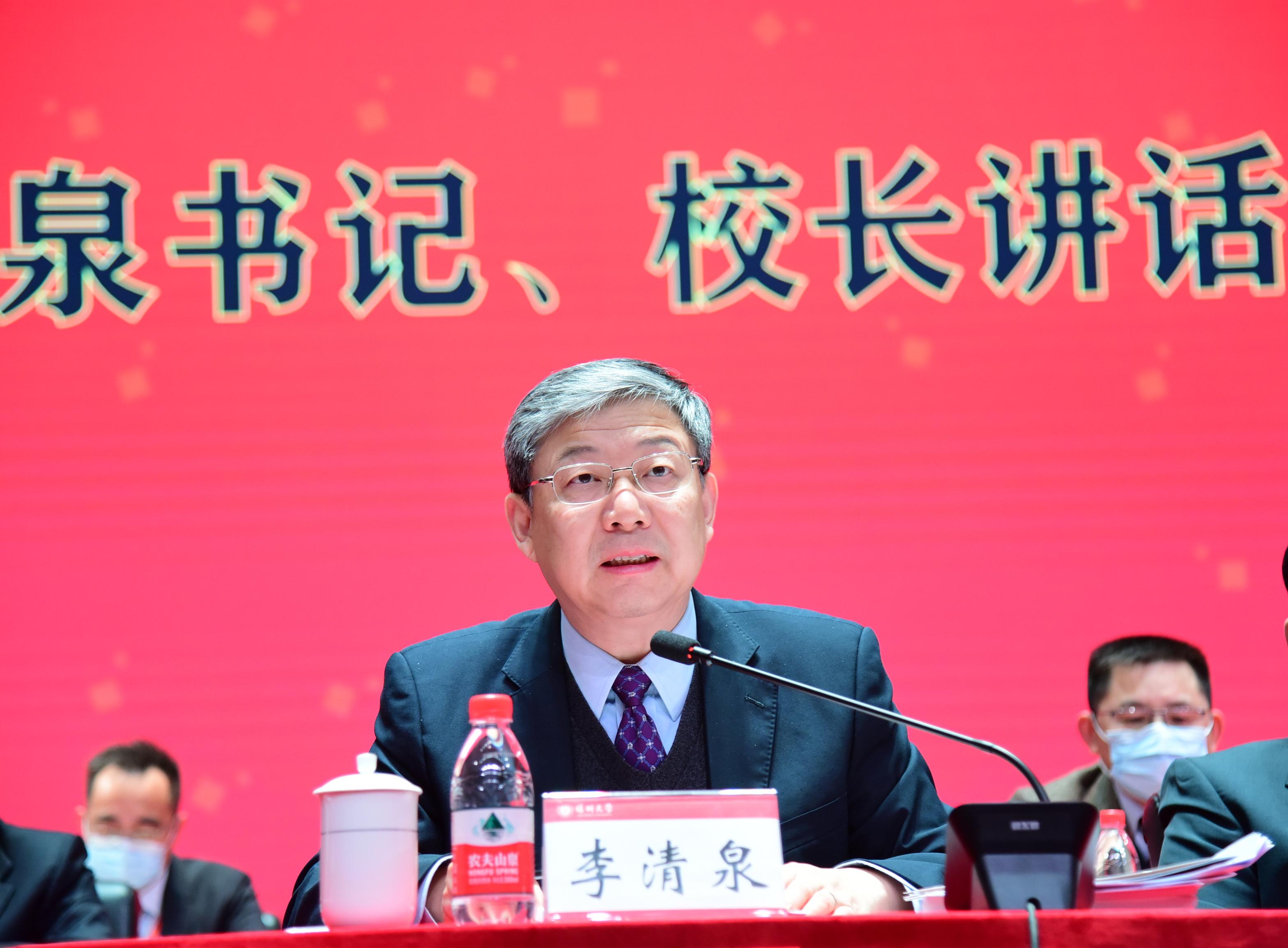 李清泉做总结讲话。他表示,乐竞平台教职工第八届二次代表大会在全体与会代表和工作人员的共同努力下,已经圆满完成了全部议程和预期任务。参加本次大会的代表们在讨论中畅所欲言,聚焦学校“双一流”创建和教职工关心的实际问题,认真履行职责,积极建言献策,提出了很多富有建设性的意见和建议,为我校争创“双一流”、奋力建设世界一流创新型大学带来了无穷的力量与希望。他强调,2021年于国家与学校而言,均是一个关键的节点,需要全校师生共同为之奋斗。他代表学校党委提出几点意见与要求:一是进一步提高政治自觉、思想自觉、行动自觉,深入学习贯彻习近平总书记重要讲话、重要指示精神,要以习近平新时代中国特色社会主义思想为统领做好学校各项工作,开创学校事业发展的新局面;二是进一步明晰学校发展目标定位,齐心协力推进学校各项工作全面提升;三是进一步强化教代会地位,充分发挥好教代会在学校民主管理和监督中的作用;四是进一步提高提案工作质量,凝聚教职工集体智慧推进学校高质量发展。李清泉深切嘱托各位代表,在梦想的征程中,要用奋斗创造未来;在前进的道路上,要不忘初心、勇担使命,凝心聚力、锐意进取,以良好的精神面貌和突出的工作业绩迎接建党100周年。