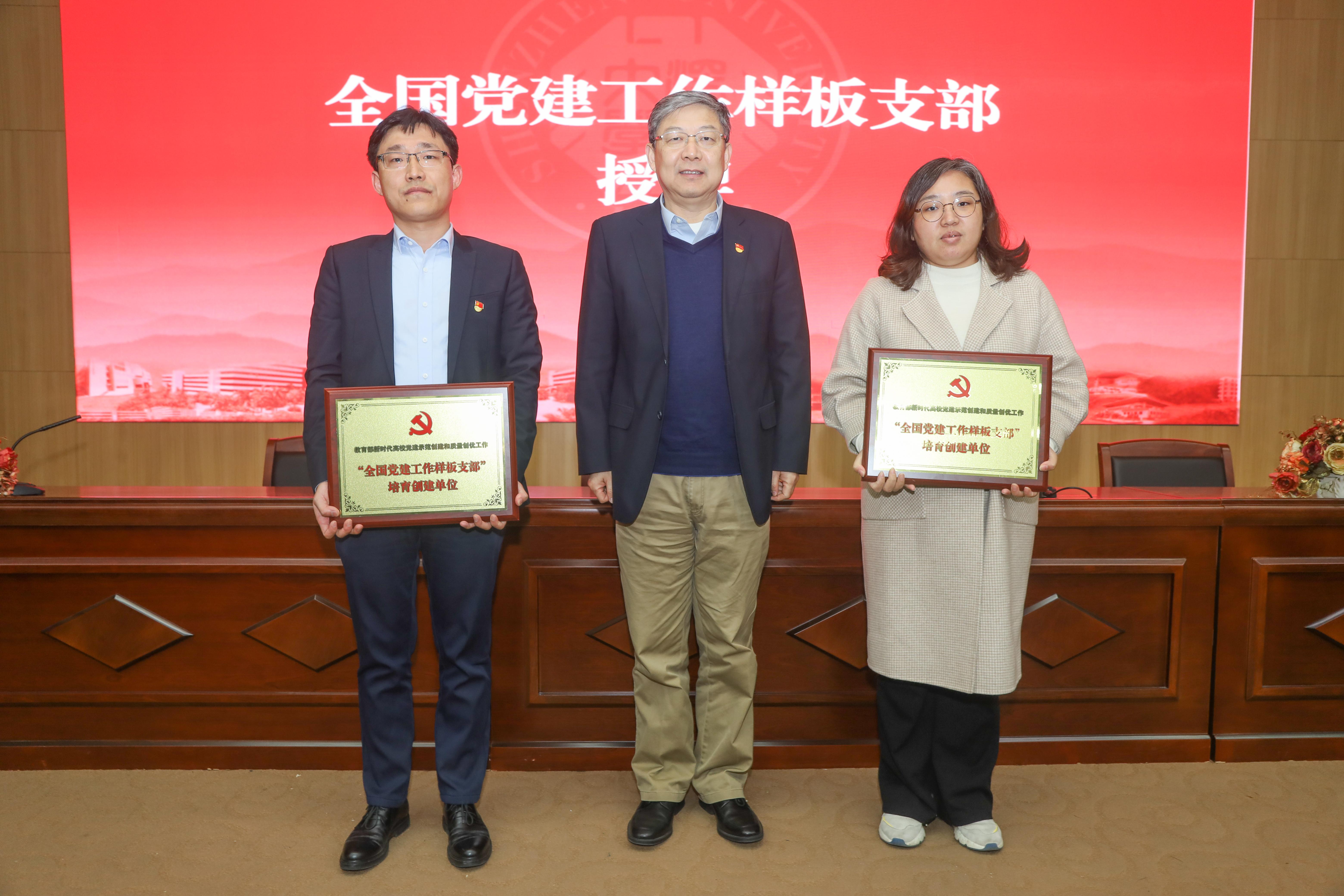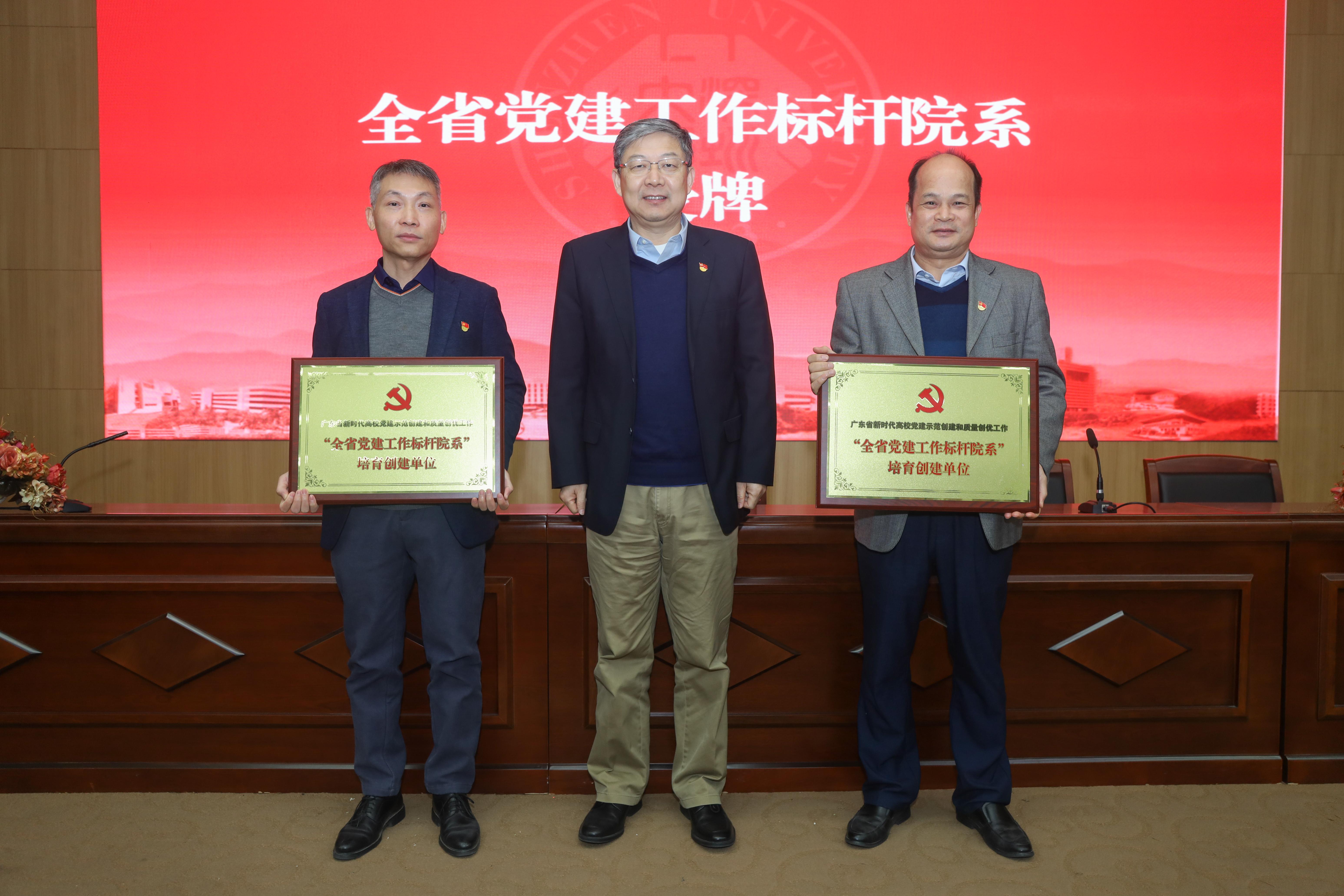 会上,李清泉为获得全国、全省党建示范创建和质量创优工作“标杆院系”、“样板支部”的培育建设单位颁发奖牌。医学部直属本科生党支部、材料学院院部和教学实验中心教工党支部获批“全国党建工作样板支部”培育创建单位;建筑与城市规划学院党支部、计算机与软件学院党支部获批“全省党建工作标杆院系”培育创建单位;医学部直属本科生党支部、人文学院本科生党支部、材料学院院部和教学实验中心教工党支部、外国语学院西语系教工党支部、经济学院本科金融学第二党支部、化学与环境工程学院第三教职工党支部、生命与海洋科学学院行政与实验中心党支部、师范学院心理学院心理学专业教工党支部获批“全省党建工作样板支部”培育创建单位。