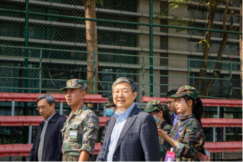 李清泉一行首先来到元平体育场看望一团师生。李清泉走访了一团团部、医务室及宣传组工作室,他格外关心学生们的身体状况,多次询问军训强度和每日学生的缺席情况,对伤病连学生们“轻伤不下火线”“争取早日归队”的精神表示赞赏;他还对学生们在疫情期间的春节返乡事宜非常关注,认真询问核酸检测安排情况。李清泉对学生们在训练中所展现出的认真态度和优异成果表示肯定,希望受训学生们再接再厉,在军训过程中增强自己的体魄,锻炼自己的意志;同时向连日来为军训工作辛勤付出的各位教官、带队教师以及医务人员表示感谢,鼓励大家圆满完成军训任务。