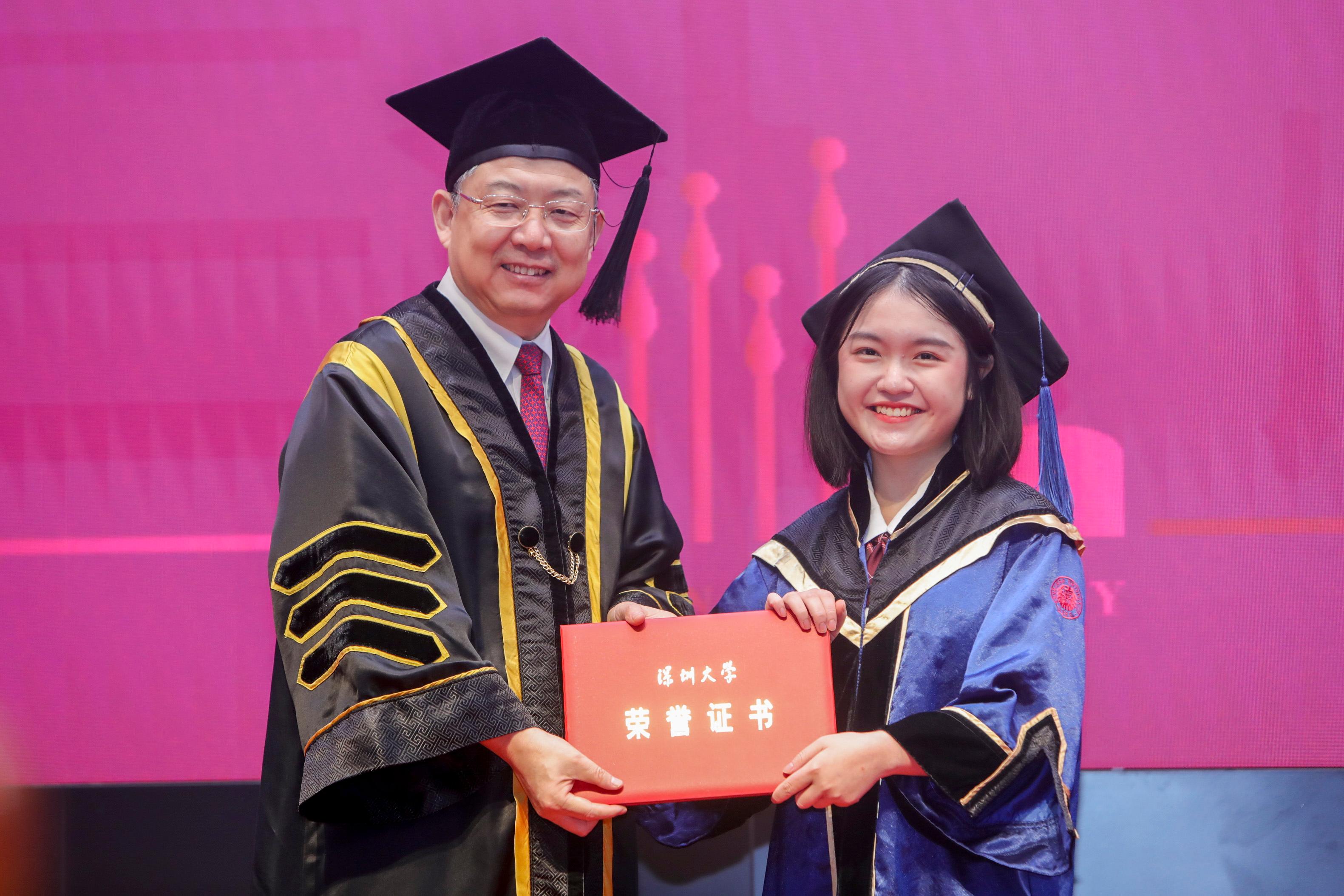 典礼仪式上,李清泉先后为博士学位获得者代表颁授学位、为荣誉学士学位获得者代表颁授荣誉学位、为优秀毕业生代表颁发表彰证书。