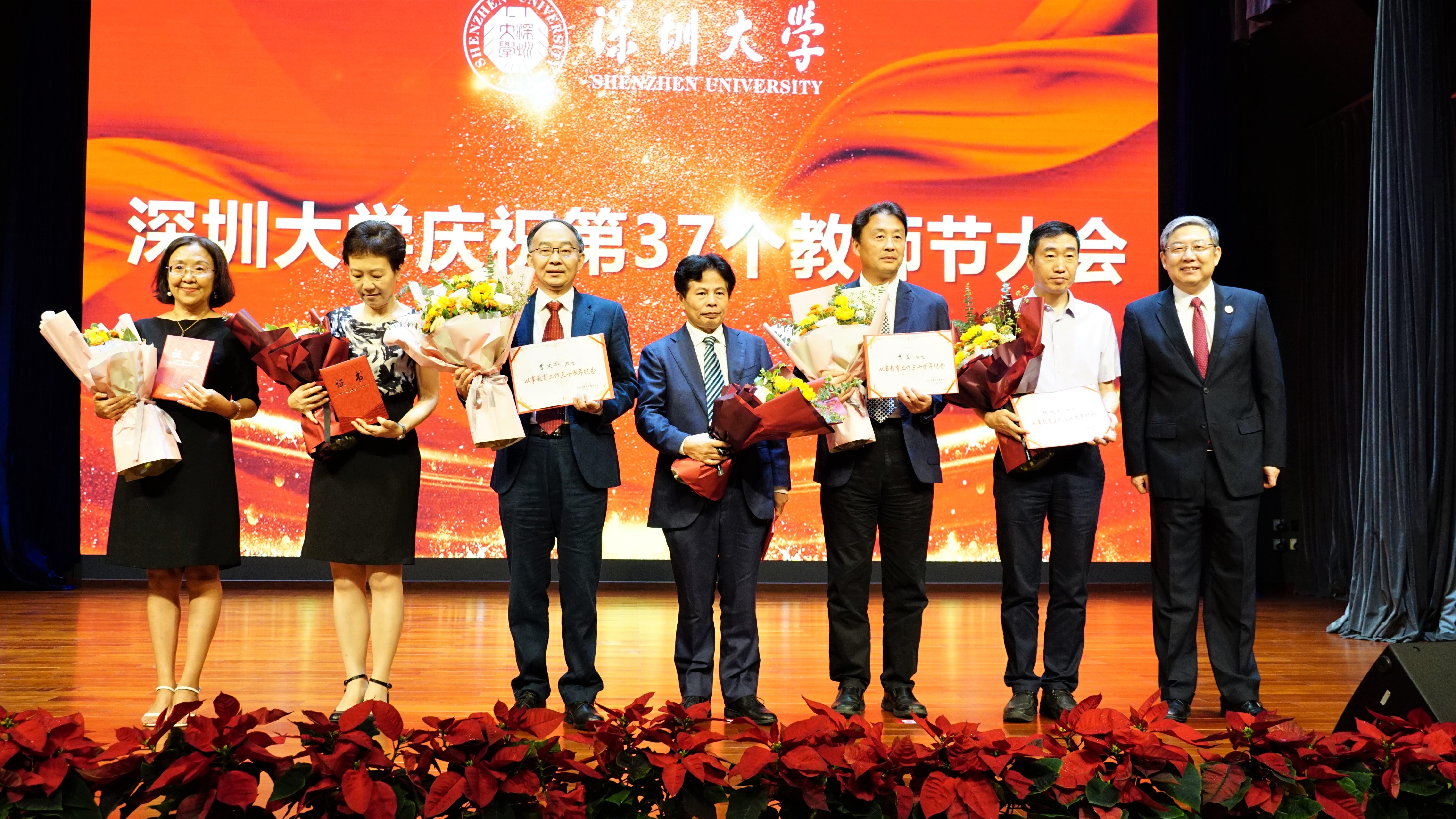 第三,我们要忠诚而深情地追逐人生梦想。什么梦想?努力成为好老师的梦想。随着丽湖校区二期投入使用,经、管、法三院上万师生进驻,深大2.72平方公里的校区已经满血运行,实现了用十年时间再造一个深大的蓝图!看着校史馆里陈列的老照片,80年代的海滩黄土之上就这么梦幻般崛起了一个现代大学,伴随着这座奇迹之城一天天长高,一天天璀璨……每每念及此处,我们就更加怀念以两院创院院士张维校长为代表的一大批创校元老,他们来创建深大之前,就已经是功成名就的大家,为了在一片滩涂和荔枝林里建设一所在亚洲具有灯塔效应的创新大学来到这里。今天的我们拥有前人无法想象的物质基础、育人条件、科研环境,更应该传承前辈学人的理想信念、人生境界、治学精神和师者情怀。所谓好老师就是自觉将生命意义建构于传承和照亮之上的知识人。“自觉”是境界、格局和站位;“传承”是育人本分,意味着个人学术造诣终究要以人才培养为初心和依归;“照亮”是社会责任,意味着人品和学品都要成为时代的高标和风尚;“知识人”相比“知识分子”更加看重人和思考的独立价值,而非某种社会成分。十年树木,百年树人。相对于中华民族、人类文明的千秋大业,百年也只是序章。当我们站在“两个一百年”的交汇处纵览环顾,今日之中国,上承“华夏三千年未有之变局”,又躬身“世界百年未有之大变局”,我们顽强而渺小的个体生命,与作为文明传承者的恢弘坚韧浑然一体,交相辉映,成就了身为师者的光荣和梦想。有一部电影叫《寻梦环游记》,它将人生的终结分为三个阶段,第一个阶段是肉体上的终结;第二个阶段是仪式告别所代表的社会性死亡;终极意义的离开是这个世界上最后一个记得你的人也把你忘记或不复存在。我想,唯有忠诚而深情的好老师可以冲破这个重围,因为文明演进链条中的每一个环节,每一个人都是抽象的我们,“人生代代无穷已”,纵使“山无棱,天地合”,师者永存,师道永昌!