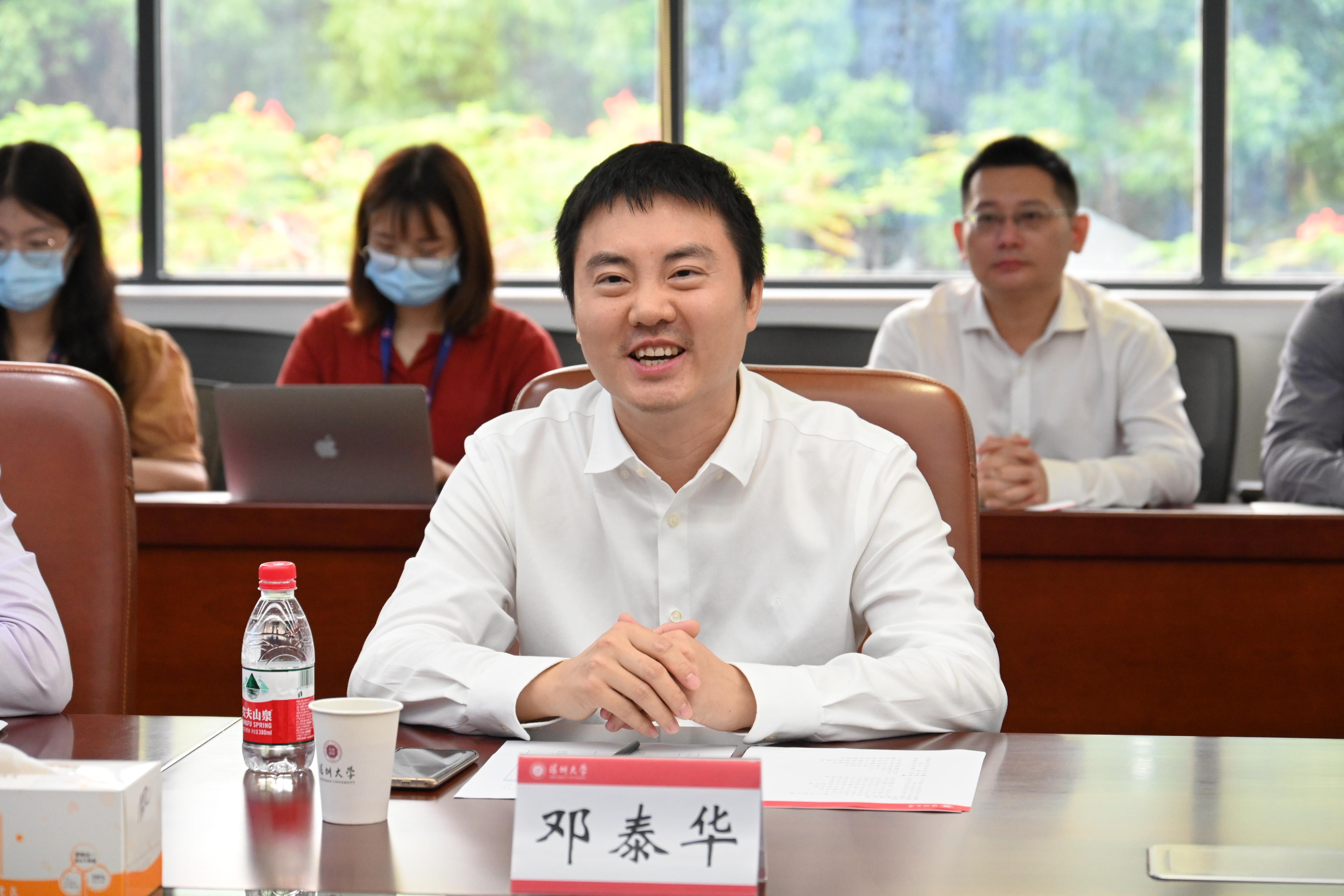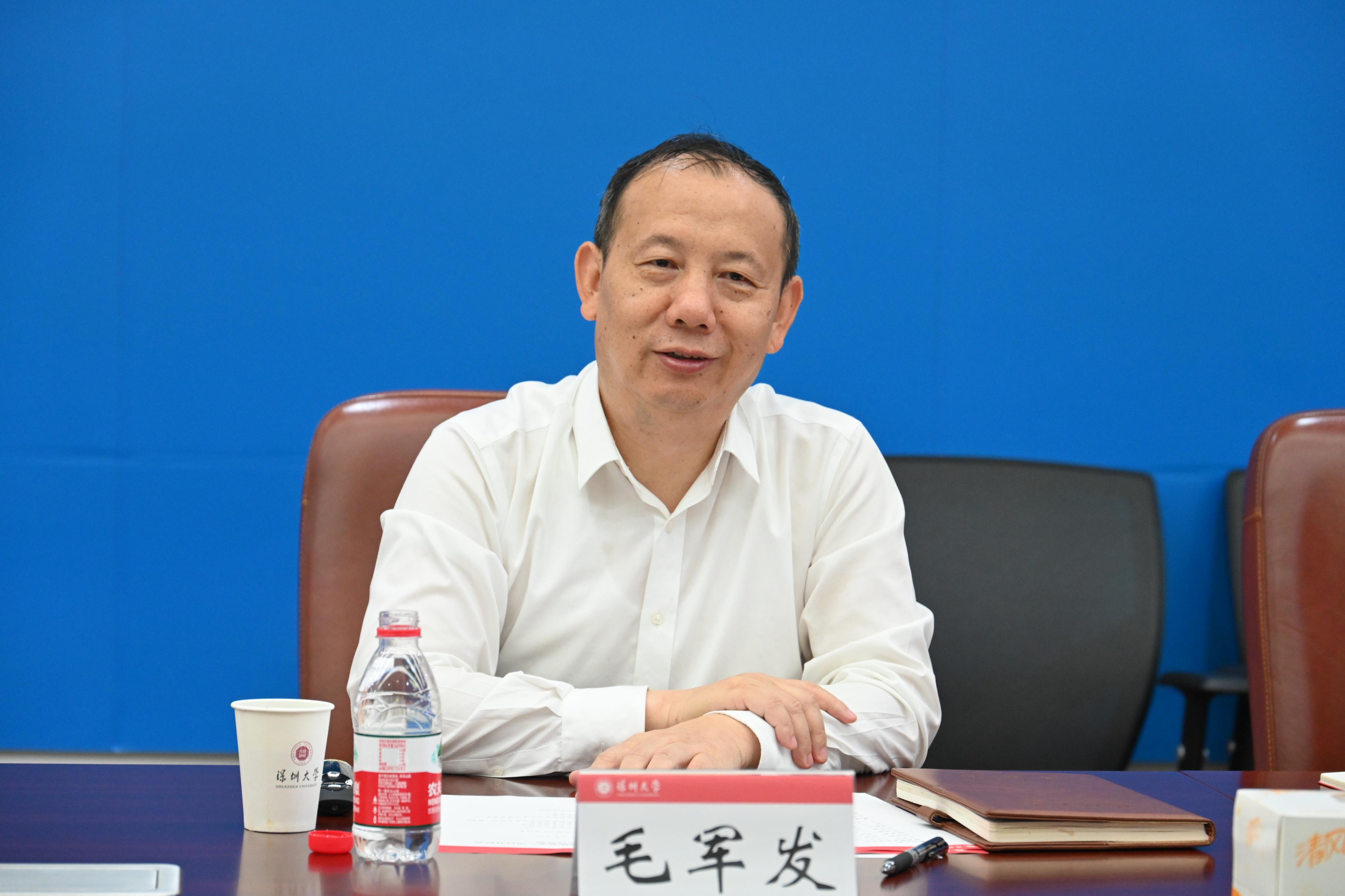 会上,毛军发代表学校对邓泰华一行来访表示感谢与欢迎,并简要介绍乐竞平台的建设发展情况。他表示,华为公司与乐竞平台一起在深圳成长、壮大,共同见证了深圳经济特区波澜壮阔的发展历史。在此期间双方携手合作,为深圳经济特区建设发展培养输送了大批人才,作出了积极贡献。毛军发指出,“智能基座”是十分具有战略意义的项目,特别是协同育人基地揭牌的一年多来,双方通过更为紧密、深入的合作,构筑起了更为科学、可持续的协同育人模式,促进了产业与人才生态的协同发展。他表示,此次会议是为未来合作开新局之举,双方将进一步拓展合作空间,期待取得更多丰硕成果。