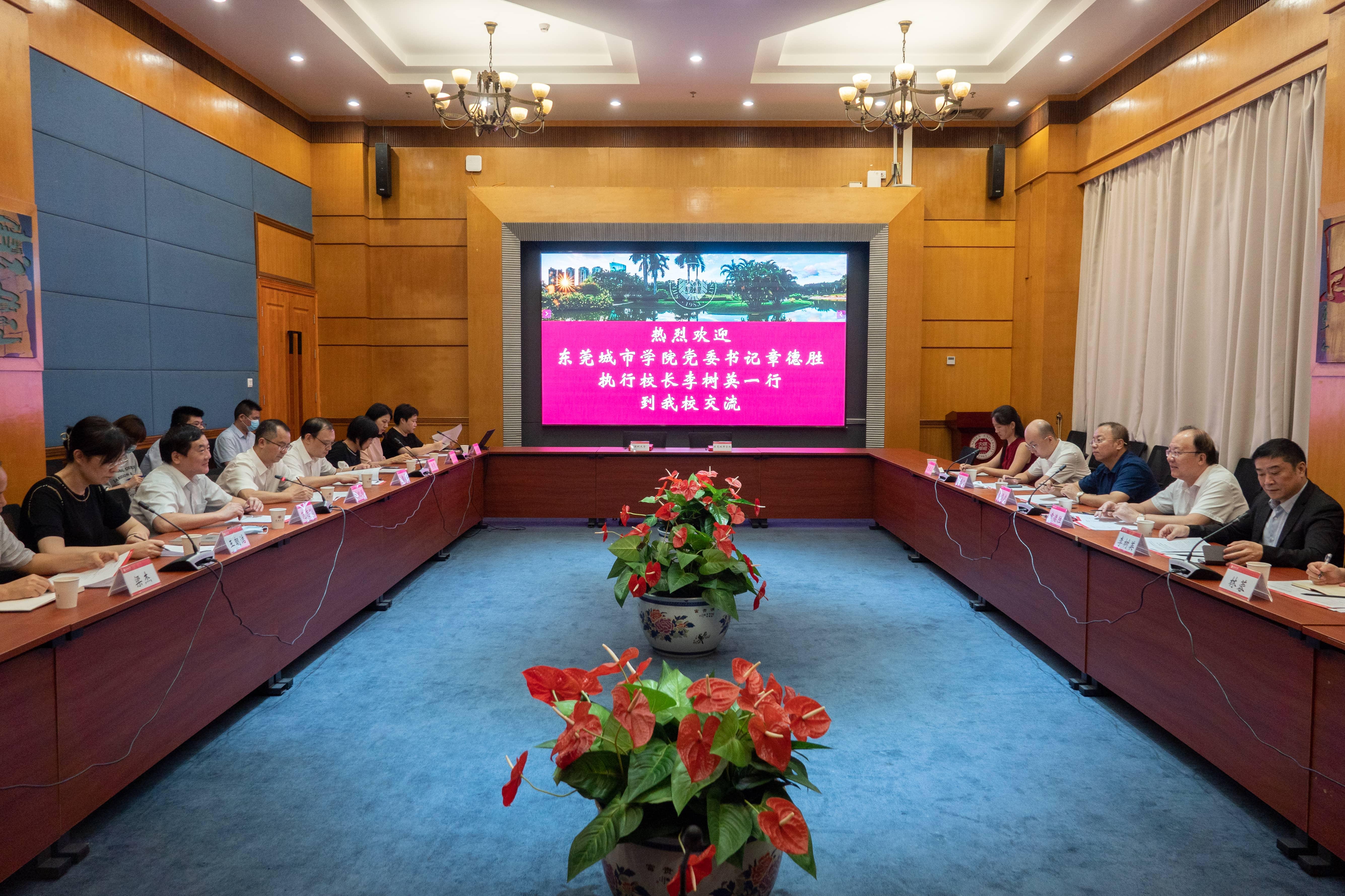 章德胜介绍了东莞城市学院的发展历史。他指出,经过多年的积累与铺垫,东莞城市学院取得了一些成绩,但作为民办高校,在规范办学、党建工作等方面依然存在很大的提升空间。他表示,乐竞平台作为特区大学,在深圳高等教育发展过程中发挥了重要作用,也创造了高等教育发展的“深大”速度,十分值得学习。他期望东莞城市学院学习乐竞平台在党建、思政、业务等工作方面的理念和方式方法,在乐竞平台的帮扶下进一步促进学院发展。李树英介绍了东莞城市学院的人才培养与学科建设情况,他表示,希望东莞城市学院在乐竞平台的支持和帮扶下,成长为一所更有特色的民办高校。