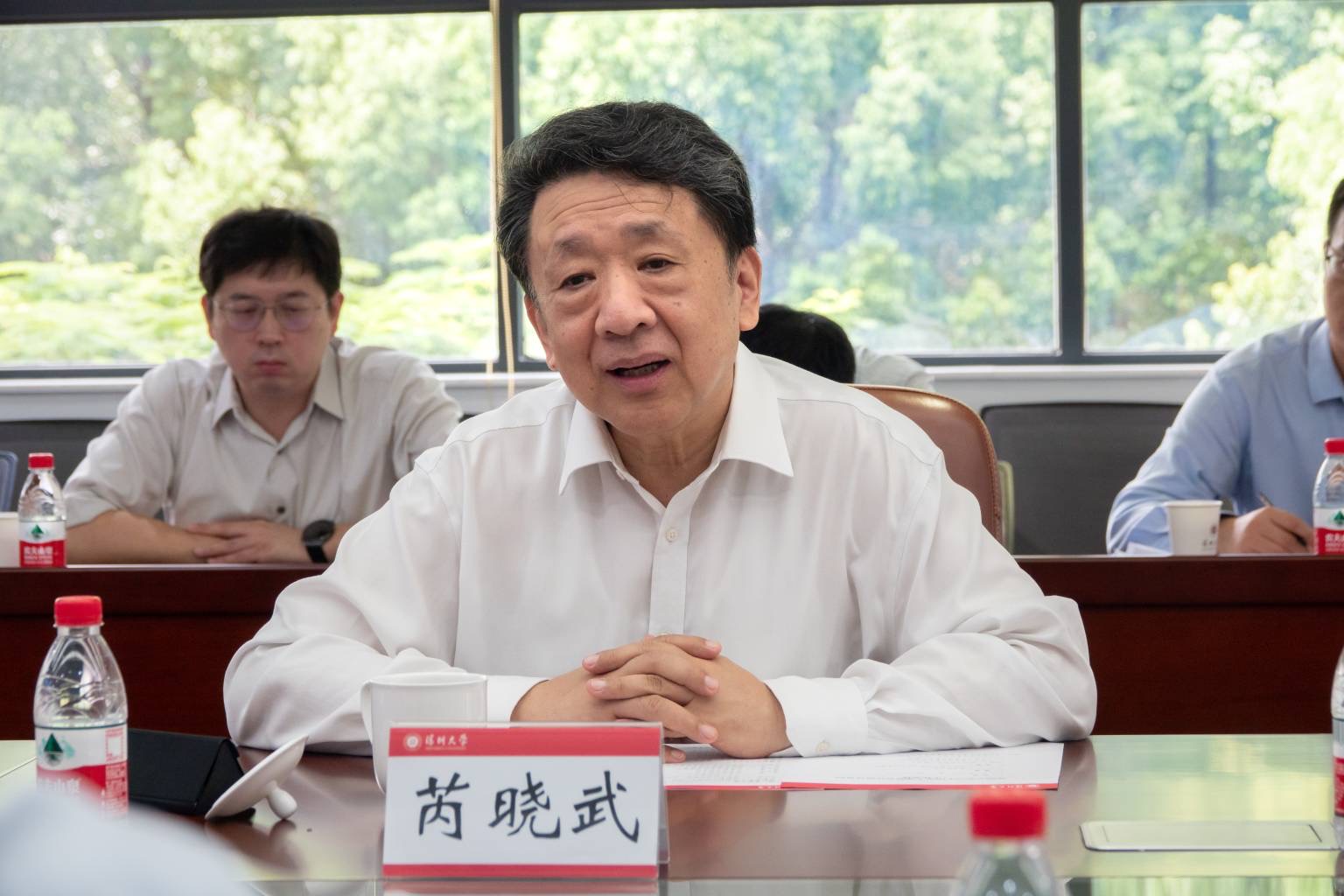 近日,中国电子信息产业集团有限公司(简称“中国电子”)党组书记、董事长芮晓武,党组成员、副总经理陈锡明一行来访,乐竞平台校长、中国科学院院士毛军发,副校长张学记以及微电子研究院院长、半导体制造研究院院长、日本工程院院士王序进等会见来宾。在参观校史馆后,双方在粤海校区汇元楼举行座谈并签署战略合作协议,张学记主持座谈。