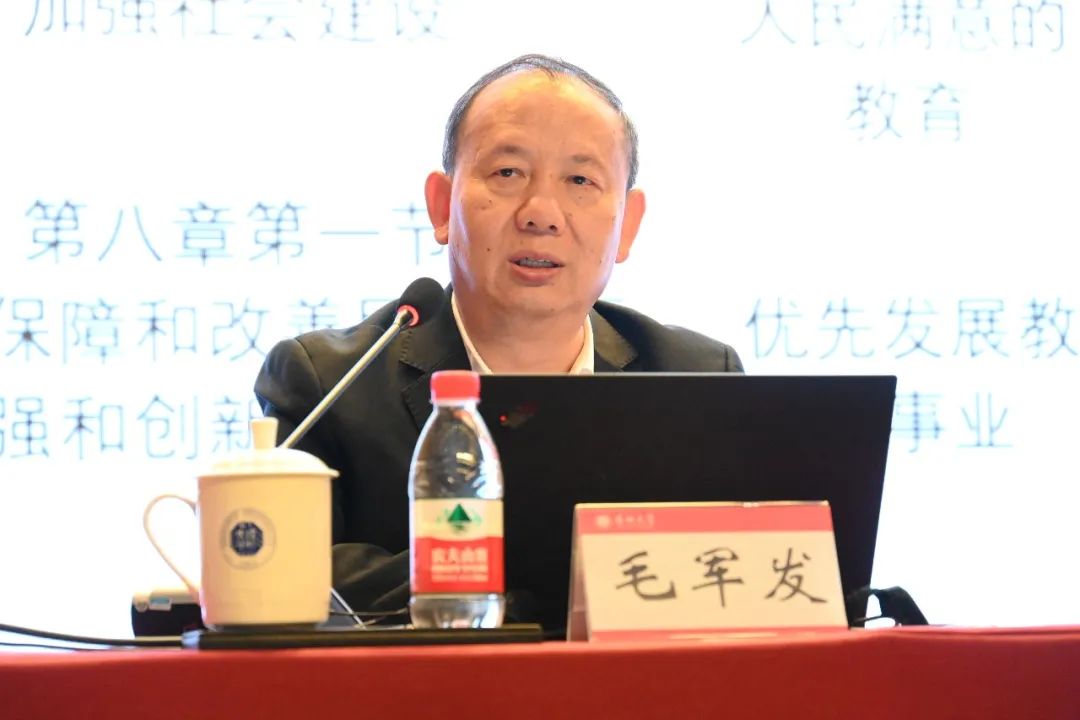 “‘坚持科技是第一生产力、人才是第一资源、创新是第一动力,深入实施科教兴国战略、人才强国战略、创新驱动发展战略’, 高等教育作为‘三个第一’的重要结合点、‘三大战略’的重要汇聚点,需要主动担当起科教强国的战略使命,成为开辟中国式现代化新道路的战略支撑力量,这是时代对高等教育的要求”。毛军发结合党的二十大报告对中国式现代化和科技教育的论述,带领师生回顾科教强国战略的历程,并从国家方针、发展全局、中国特色、历史进程和政府规划等五个维度,分析了高等教育在现代化建设全局中的重要地位、在科教强国中的基础性战略性作用和在现代化建设全局中的特殊使命。